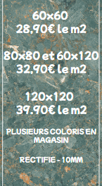 De nombreuses promotions à découvrir en magasin avec du carrelage de toute tailles - 60x60, 80x80, 90x90, 120x120...